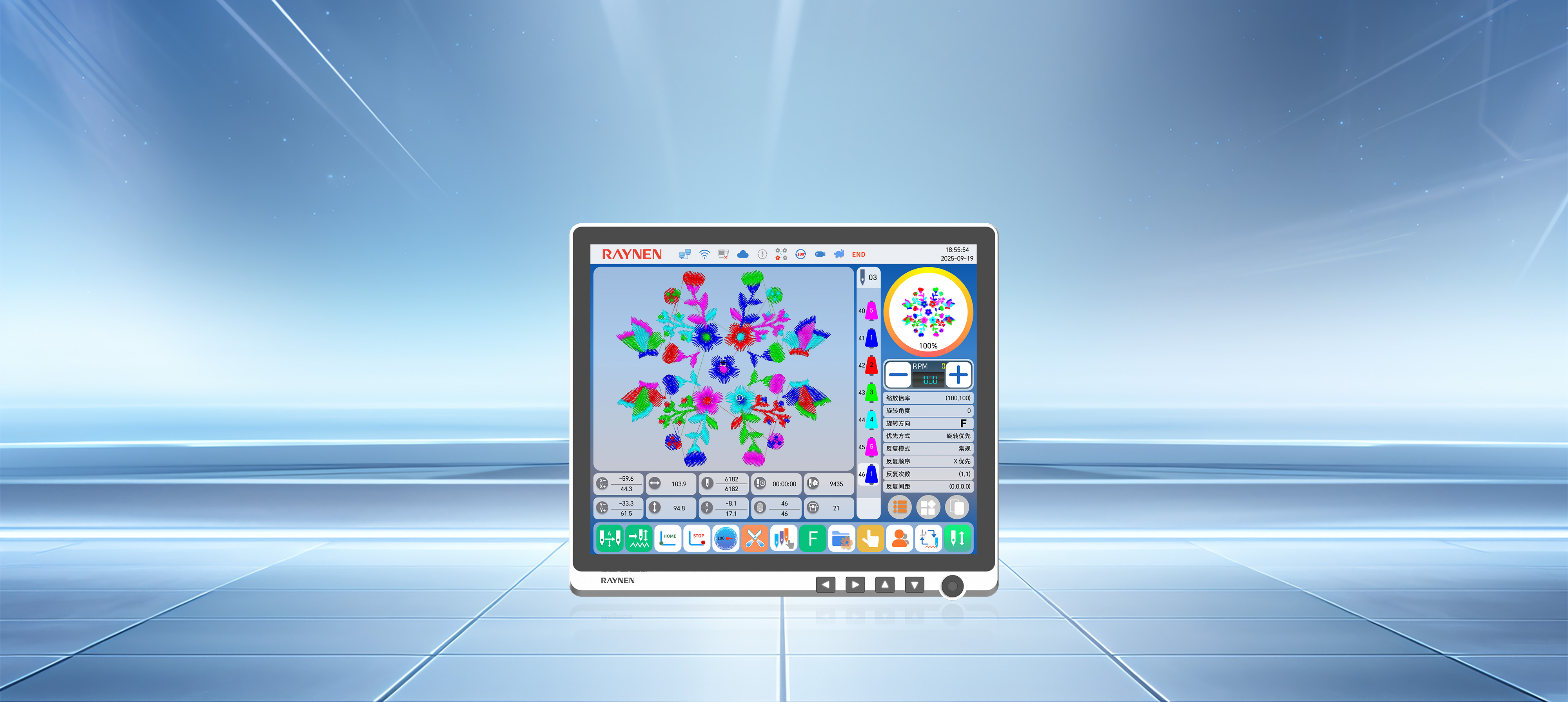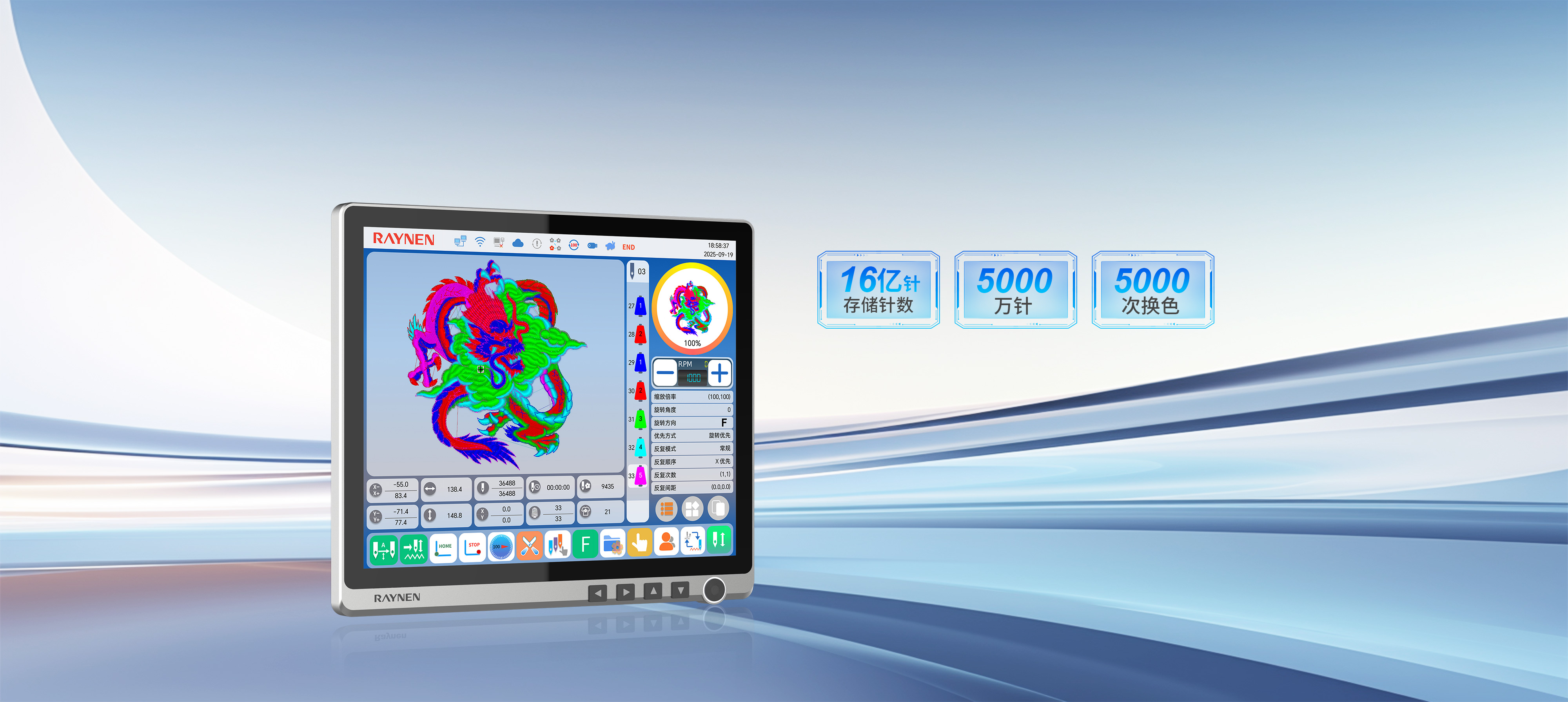 存儲針數(shù)達16億針,單個花樣可達5000萬針、5000次換色