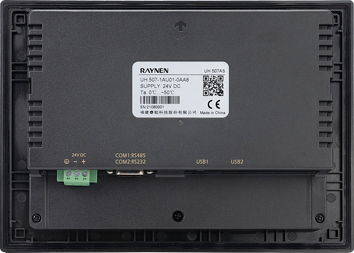| UH 507AE | 7"TFT | 800×480 | USB2.0×1 Type A(USB1) 支持U盤更新固件、組態(tài)和存儲數(shù)據(jù) | USB2.0×1 Type B(USB2) 支持程序上傳下載 | COM1:RS485 COM2:RS232 | 10M/100 M自適應 | 230×166×39mm | |